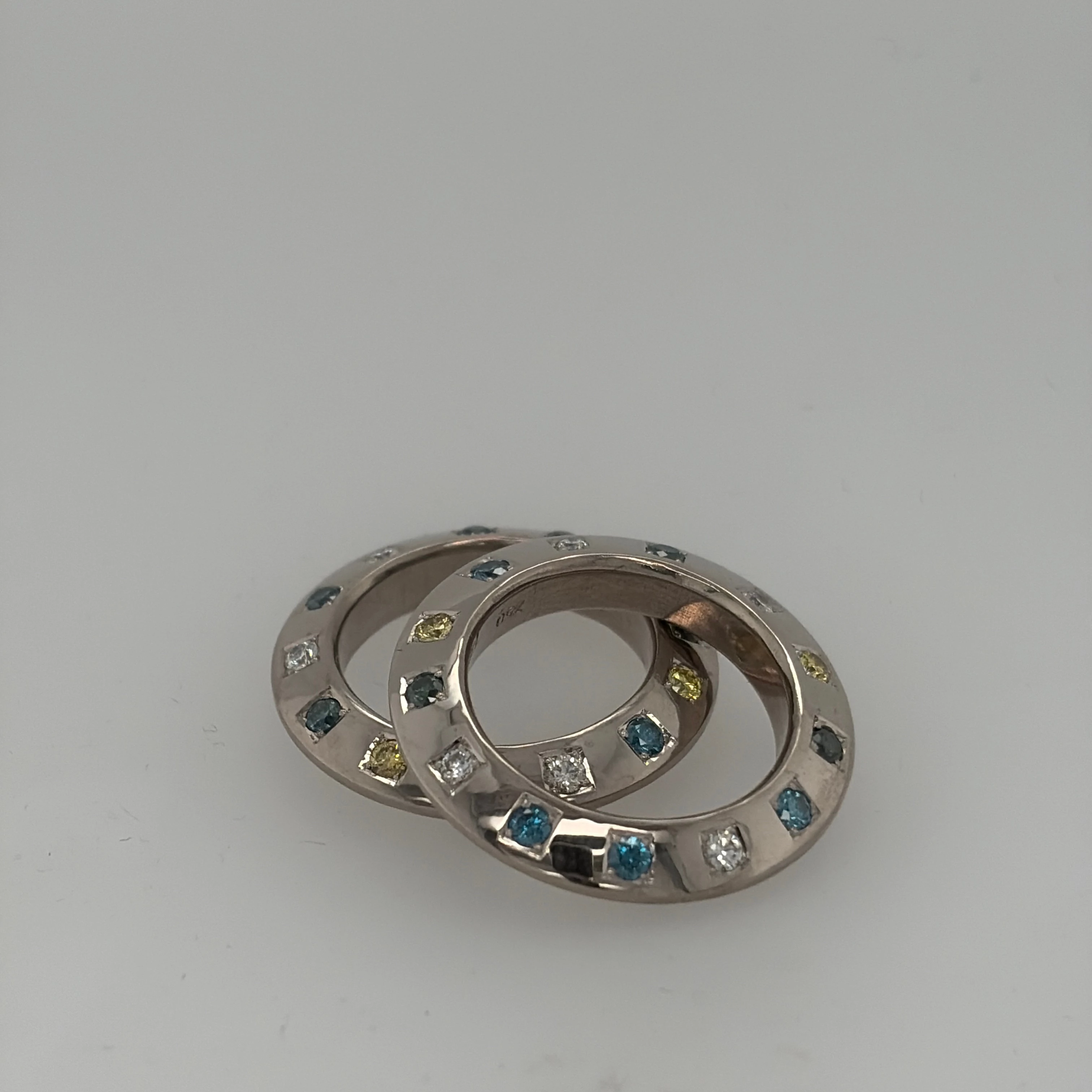 2 Ringe 750/- mit farbigen Brillanten (Gelbgold)
